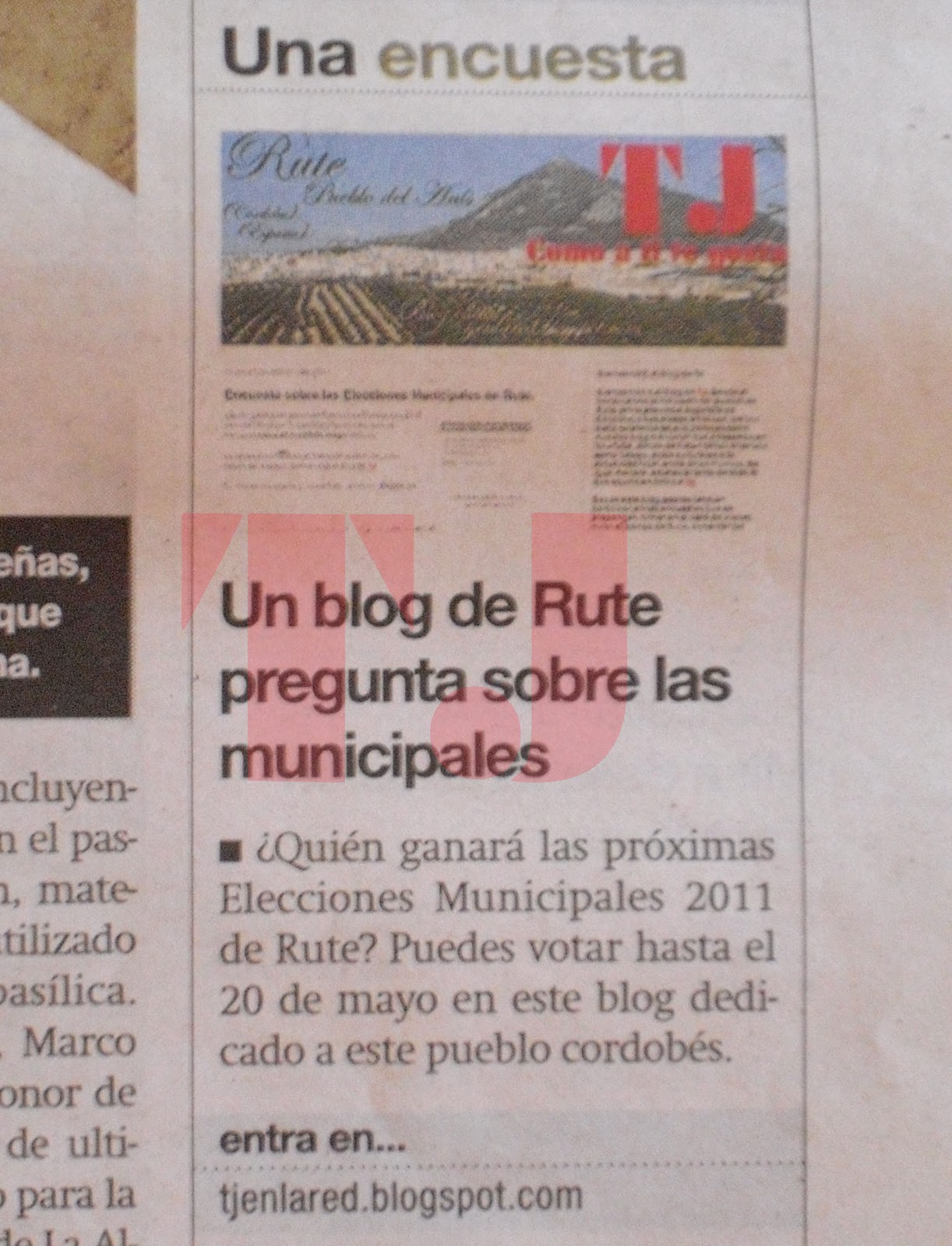 En la edición del martes 22 de febrero del 2011 ha aparecido en Diario Córdoba una pequeña reseña a nuestra encuesta sobre las Elecciones Municipales del presente año. Se muestra la cabecera de nuestro blog, seguido de un pequeño texto explicativo.